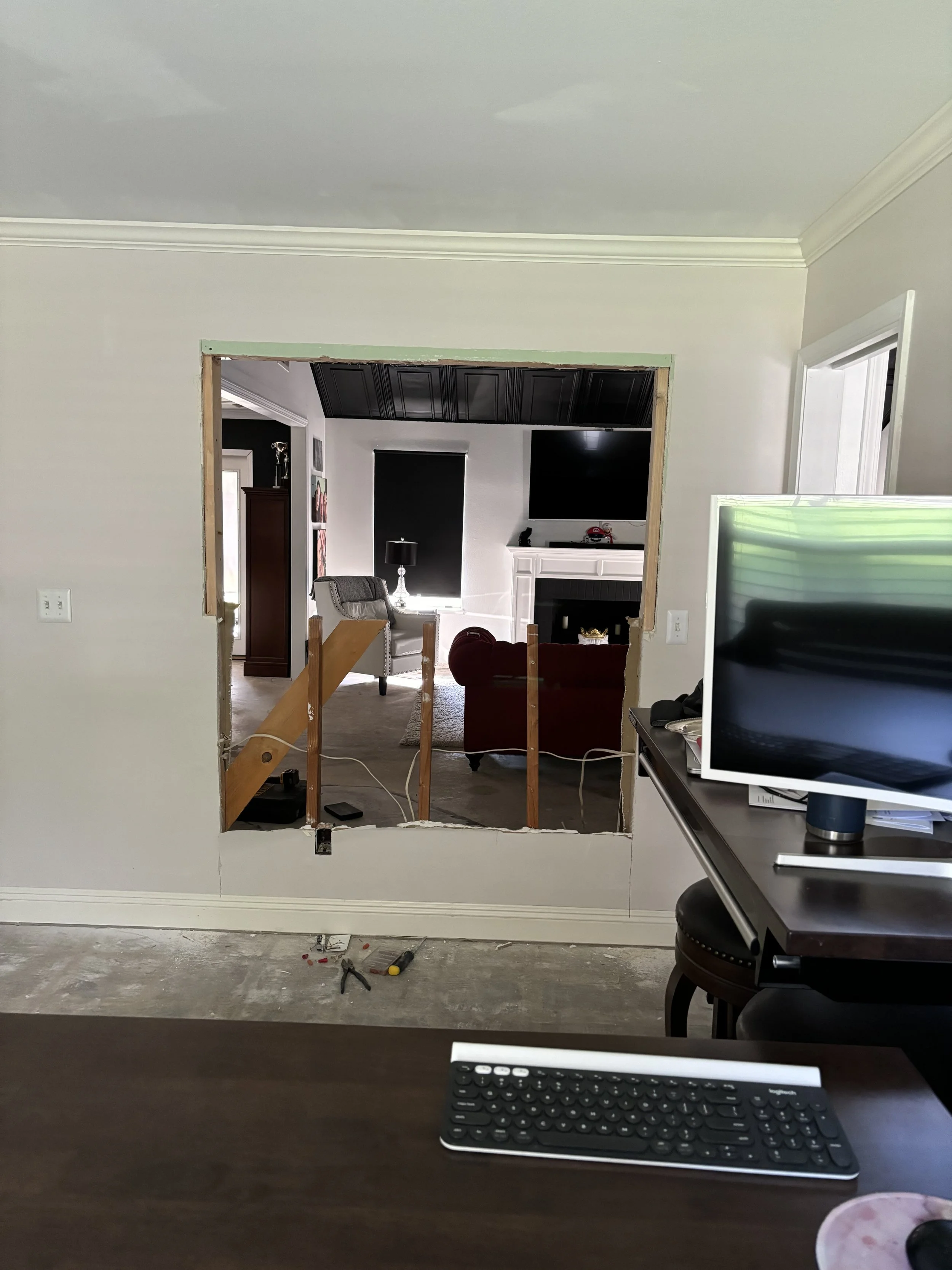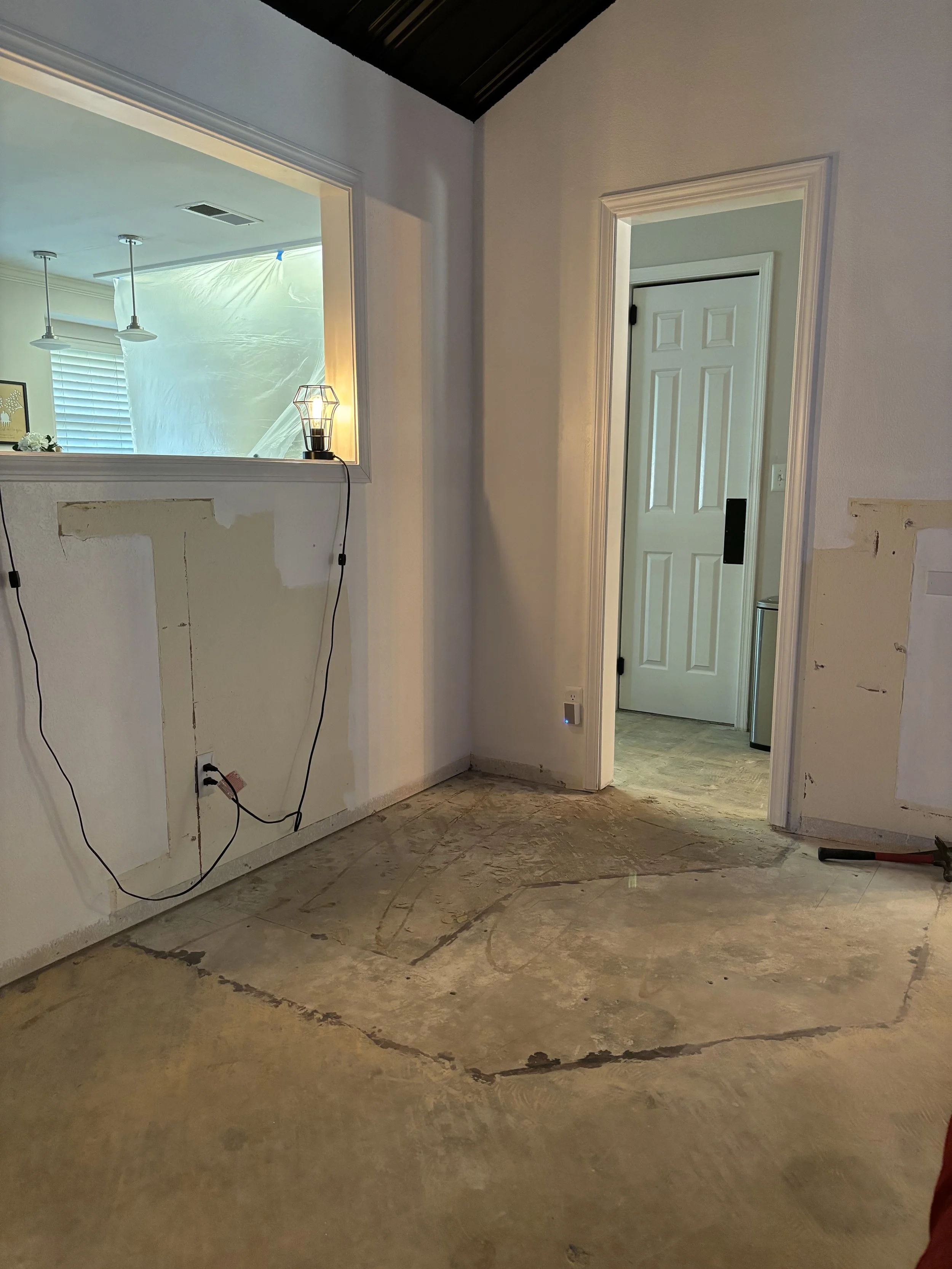 Our ultimate goal is to create an open space between the kitchen, dining area (currently my office), and the living room. Removing the wall significantly increased the overall flow of the area bringing more natural light into the living room. This project will continue as time and funding permit but as we always say: Demolition is free and gets us one step closer to our home improvement goals!