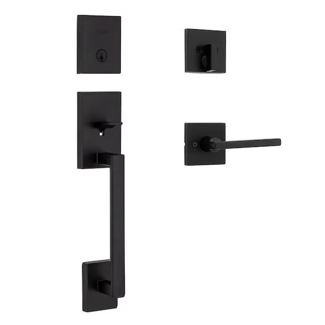 Kwikset matte black deadbolt handleset with lever and smartkey